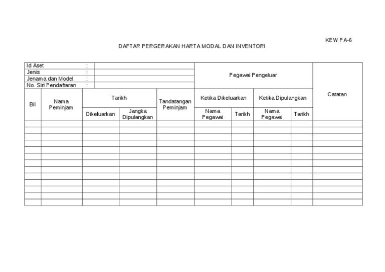 Borang Kew Pa Terbaru : Pa ( pengurusan aset alih kerajaan ) bil.