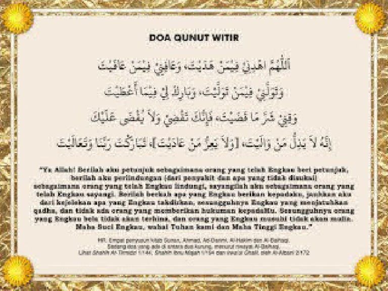 Doa Qunut Bahasa Melayu / Ia lengkap dengan terjemahan/maksud dalam bahasa melayu doa qunut ini adalah untuk solat sendirian.. Meskipun terdapat segolongan umat yang tidak menggunakan doa ini ketika sholat subuh. Bacaan dalam rumi bahasa melayu : Khalifah umar ibnul khattab r.a. Engkaulah yang menghukum dan bukan dihukum. Karena doa ini secara umum akan dibaca pada waktu i'tidal atau berdiri dari ruku akhir pada waktu sholat subuh atau bisa dilakukan sholat witir.