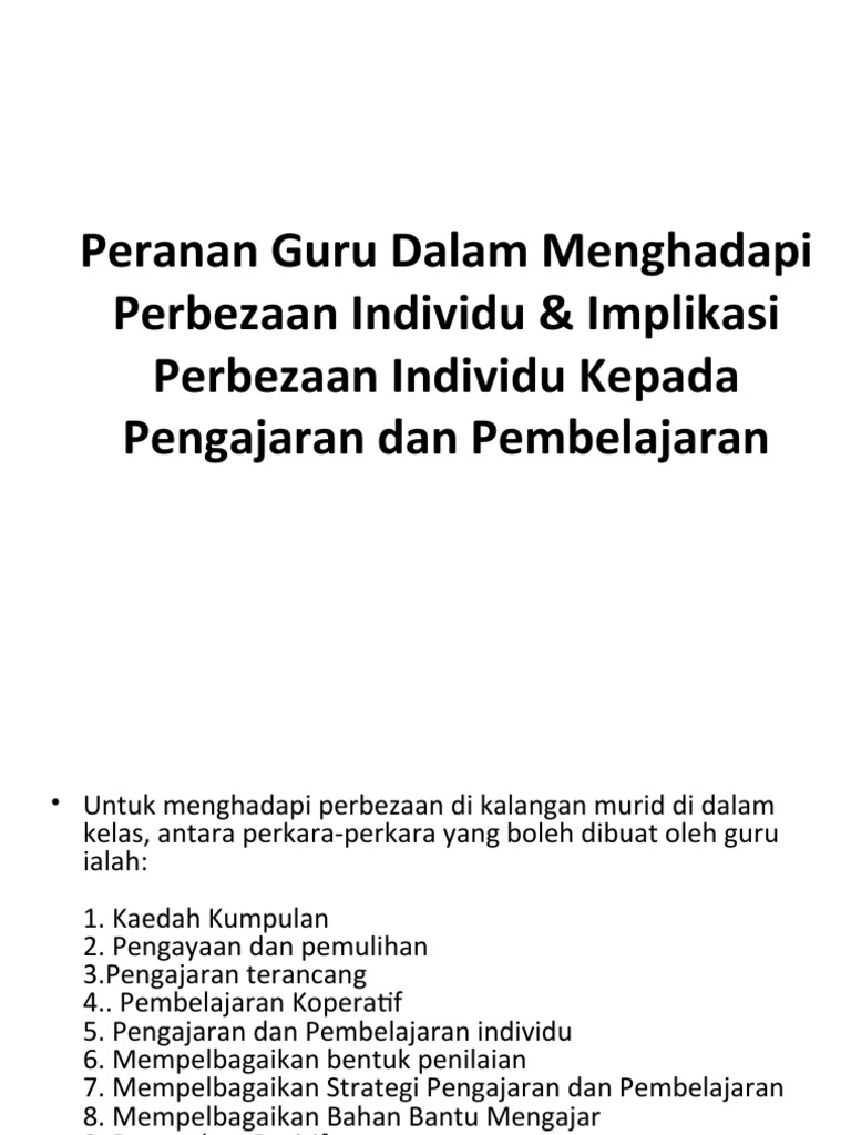 Peranan Guru Dalam Menghadapi Perbezaan Individu Implikasi from imgv2-1-f.scribdassets.com Implikasi perbezaan individu terhadap pengajaran dan pembelajaran. We did not find results for: Maybe you would like to learn more about one of these? Check spelling or type a new query.